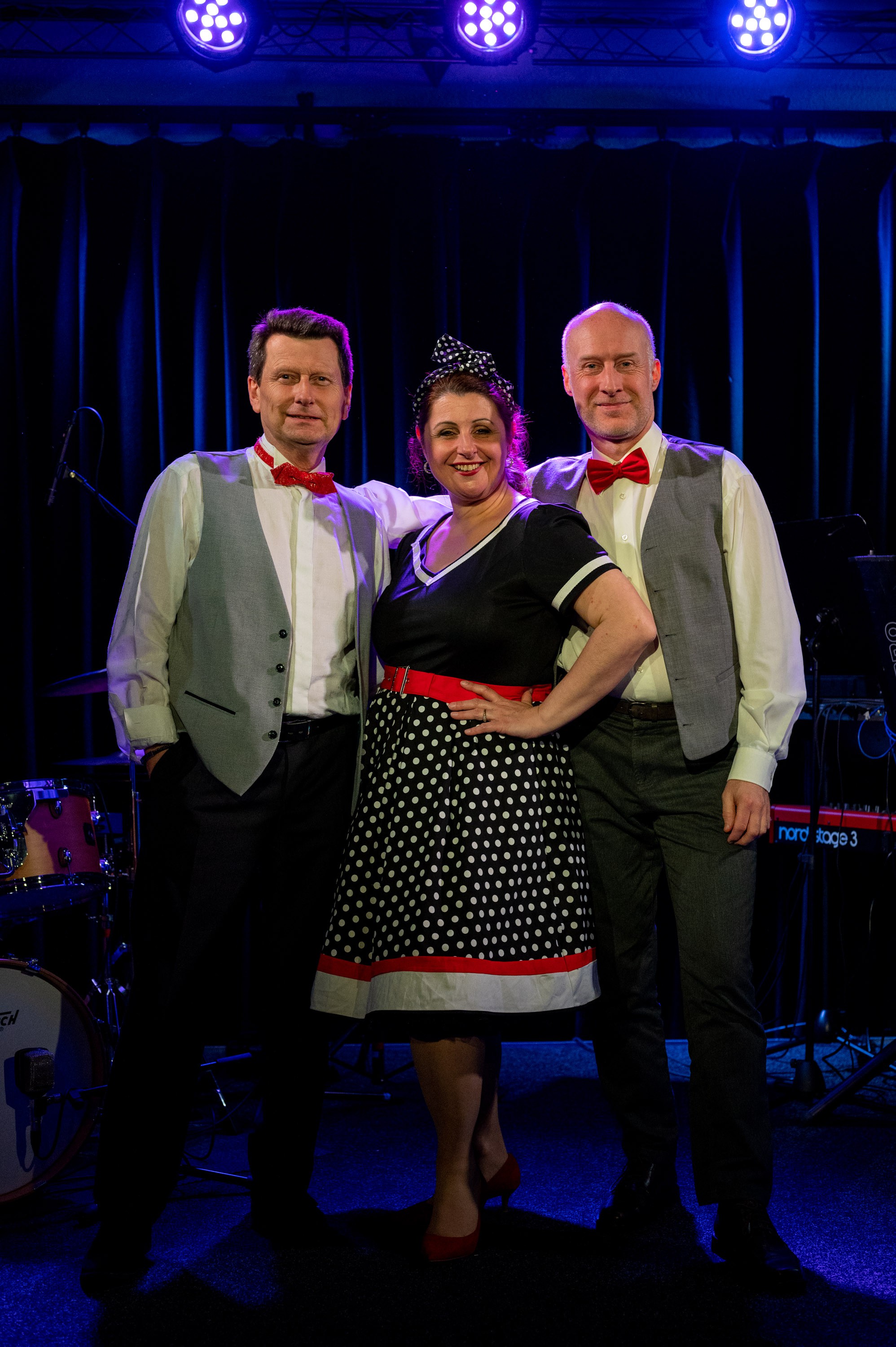 Erleben Sie die drei Künstler wieder mit Petticoat, Fliege und einem neuen, bunten Strauß voller „Gute-Laune-Musik“, eigens arrangiert für Gesang, E-Piano und Schlagzeug!